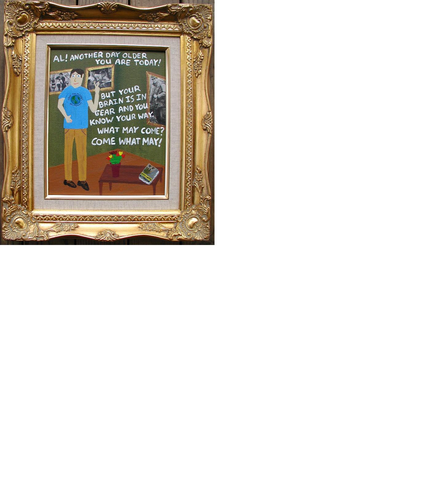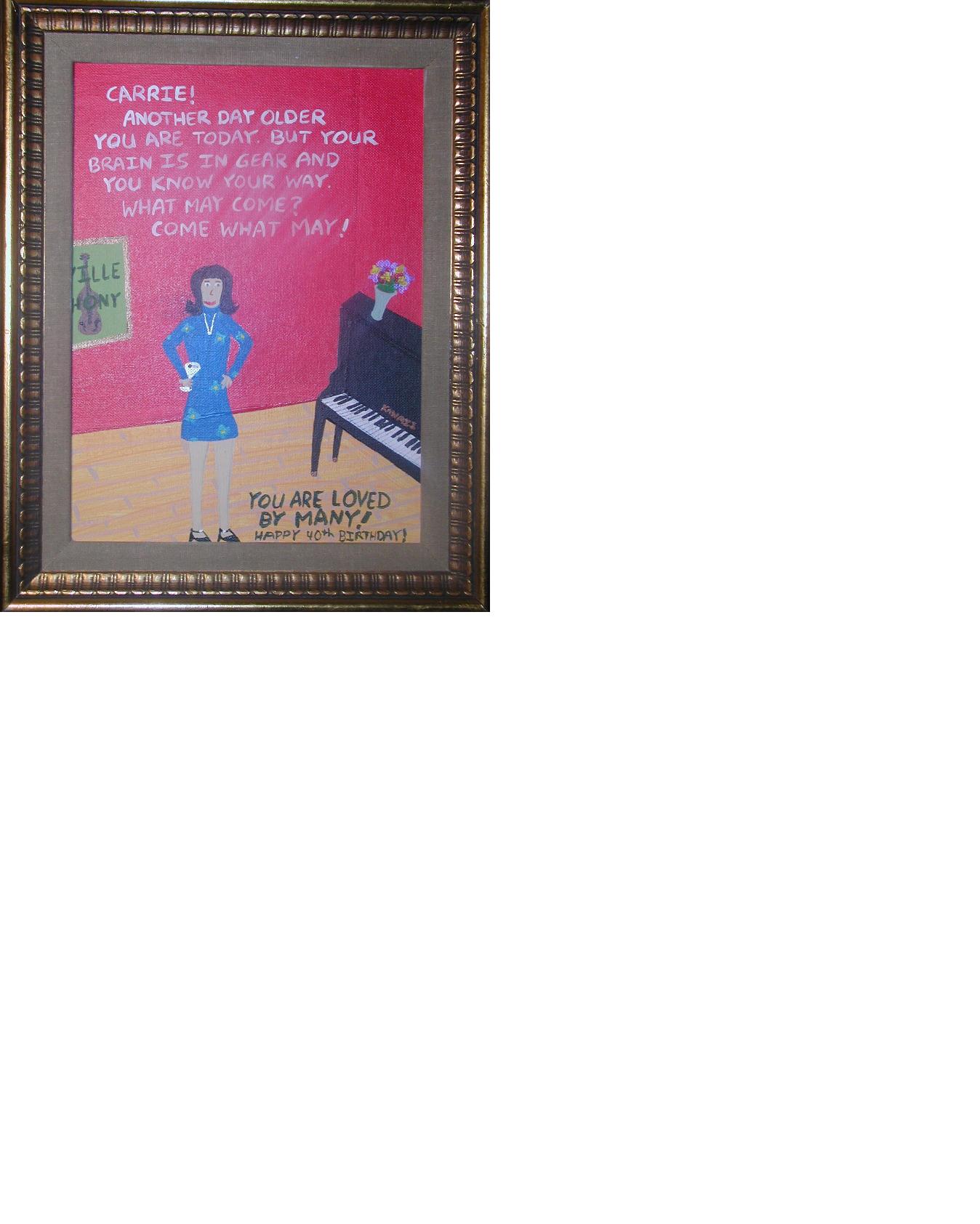 Would you like a "Come What May" Birthday painting for a friend or for yourself? I will paint one for you! It has a greeting, thanks to my brother Mark, that says "Another day older you are today. But your brain is in gear and you know your way. What may come? Come what may!" Email me on the World Wide Web Internet at plastic350@gmail.com |